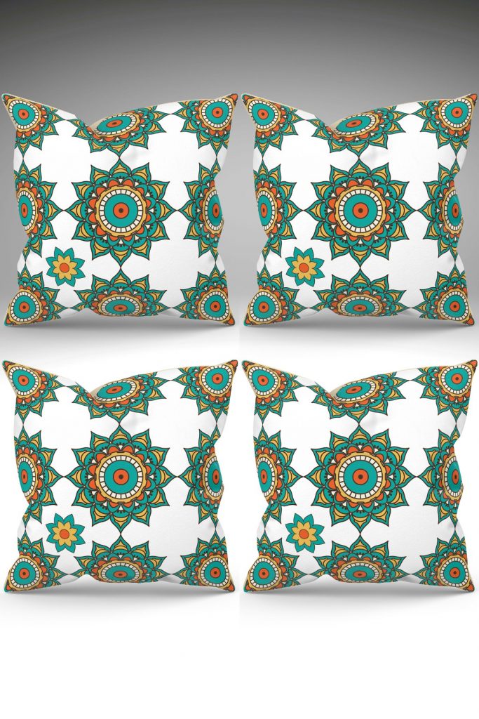 Dormot Home Modern Çift Yön Yeşil Mandala Baskılı Kırlent / Yastık Kılıfı 43cmX43cm